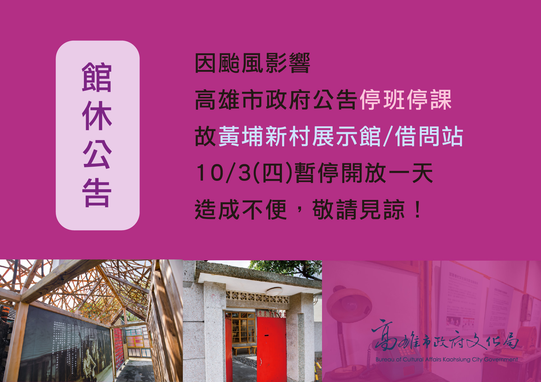黃埔新村展示館/借問站 館休公告海報