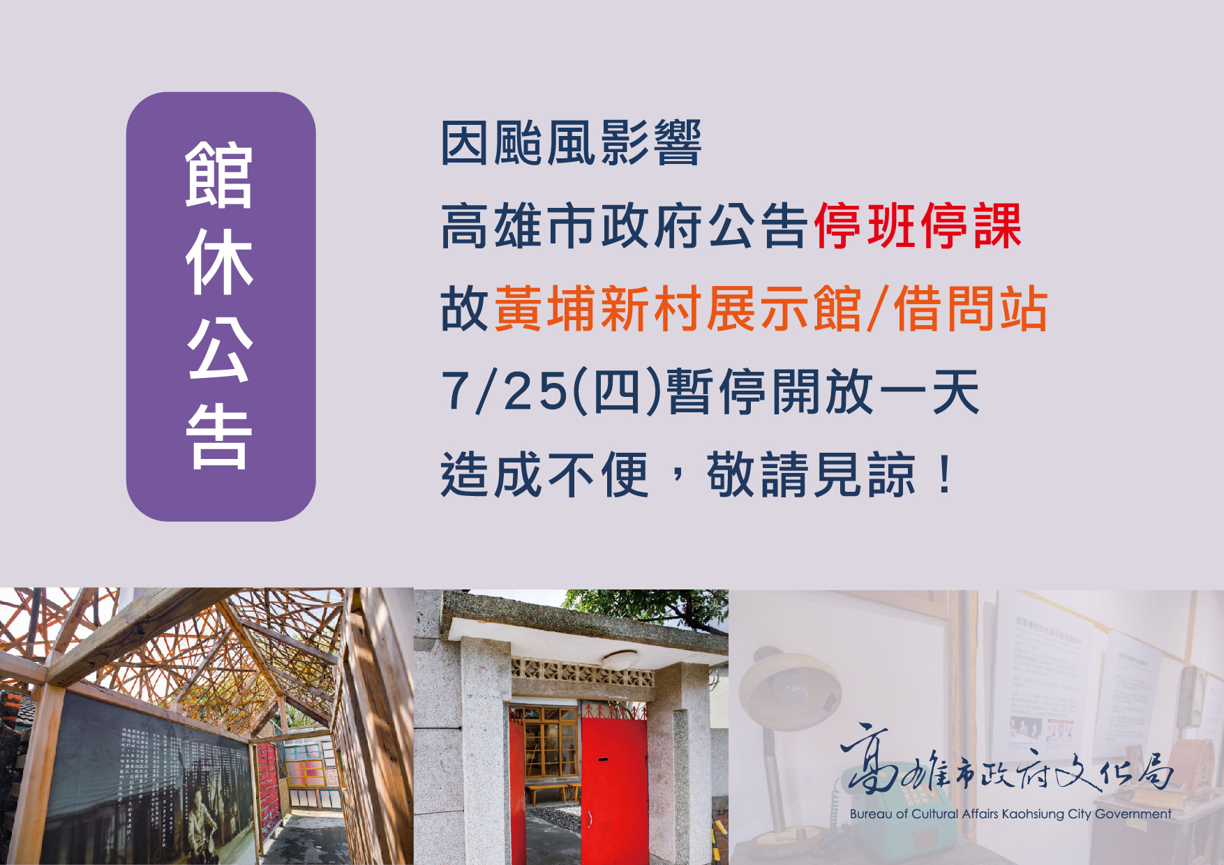 黃埔新村展示館/借問站 館休公告海報