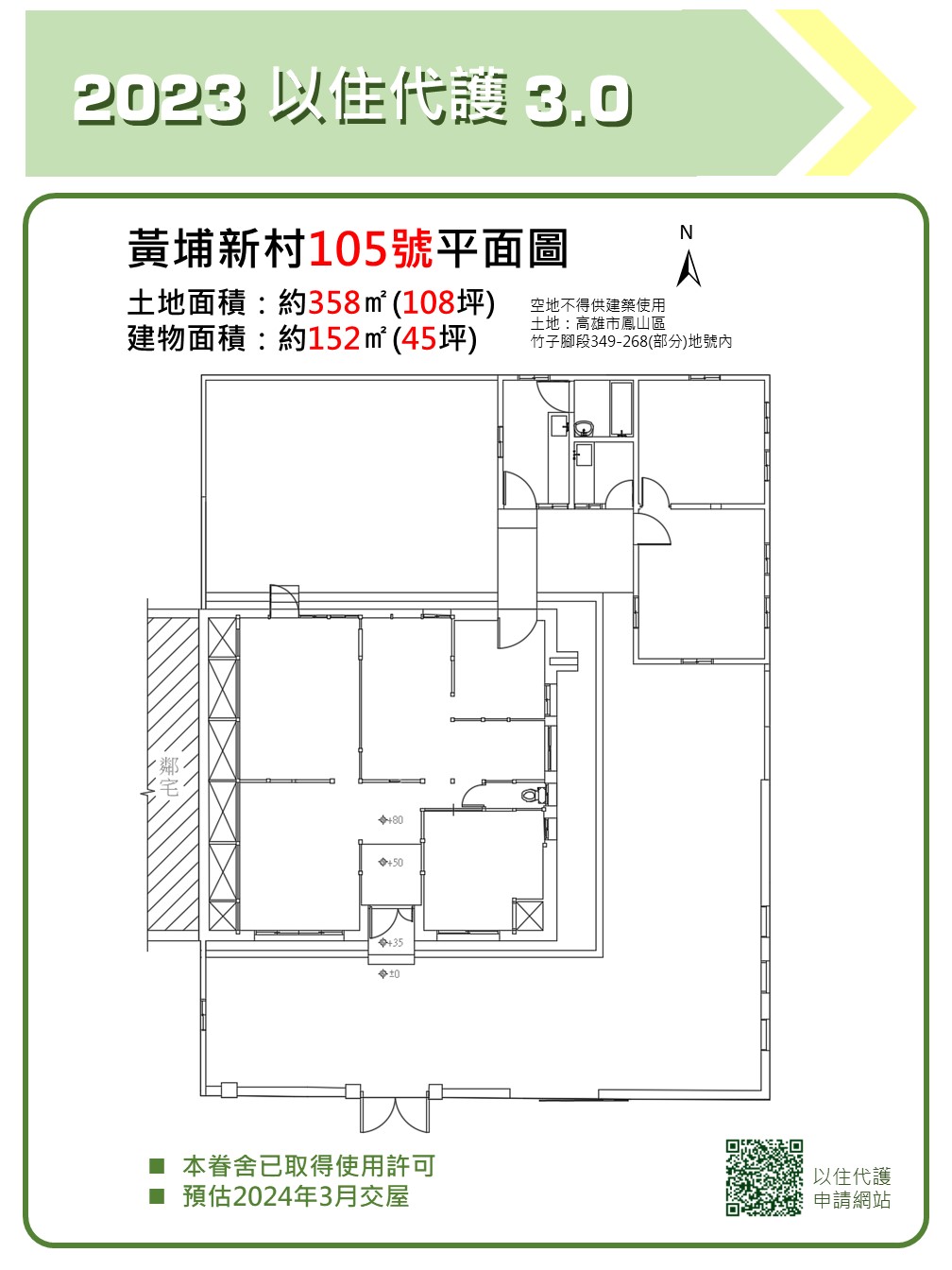 ※空間佈置(傢俱、寢具等)照片為現進駐者所有,屆時交屋為騰空之眷舍現況點交